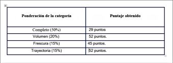 La sumatoria de los resultados arrojaría un total de 35.45 de Puntuación General.