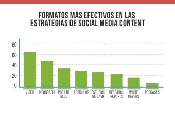 Una encuesta sobre Content Marketing en las redes sociales, realizada a 294 vendedores y comercializadores de contenido, resalta que los formatos más efectivos para captar público son el video (69%), infografías (50%) y post de blog (35%).