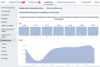 El comportamiento de las personas puede variar según tu audiencia, pero puedes hacer uso de las estadísticas para evaluarlo. Para ello dirígete a tu Fan Page, ve a estadísticas y luego da clic en “publicaciones”. Verás algo así: