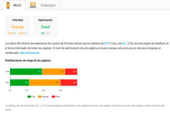 Las páginas se clasifican en tres tipos: rápidas, normales y lentas. Las siglas FCP y DCL hacen referencia a los siguientes elementos de carga: