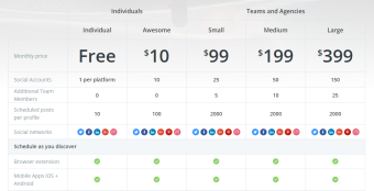 Sí. En la versión gratuita son solamente diez posts los que puedes programar. Mientras que en el resto de modalidades de pago, como en el caso anterior, van aumentando (100 en el plan pagado para Individuals, y 2.000 es el límite para las tres versiones de pago para grandes agencias).